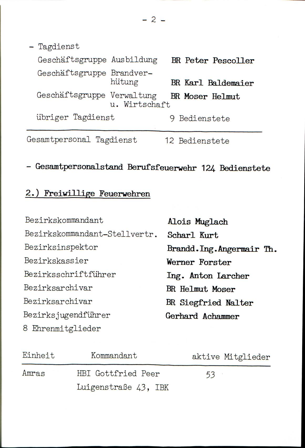 I. PERSONALSTAND DER FEUERWEHR DER STADT INNSBRUCK