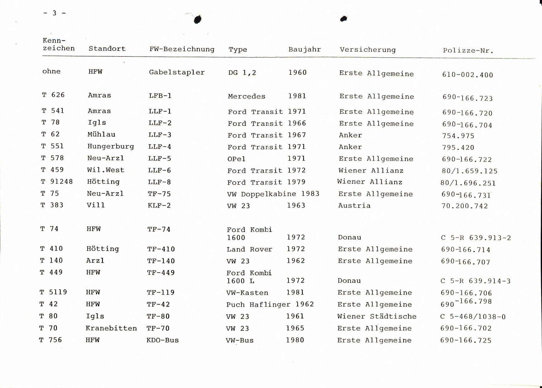 zeichen Standort FW-Bezeichnung Type Baujahr Versicherung Polizze-Nr.