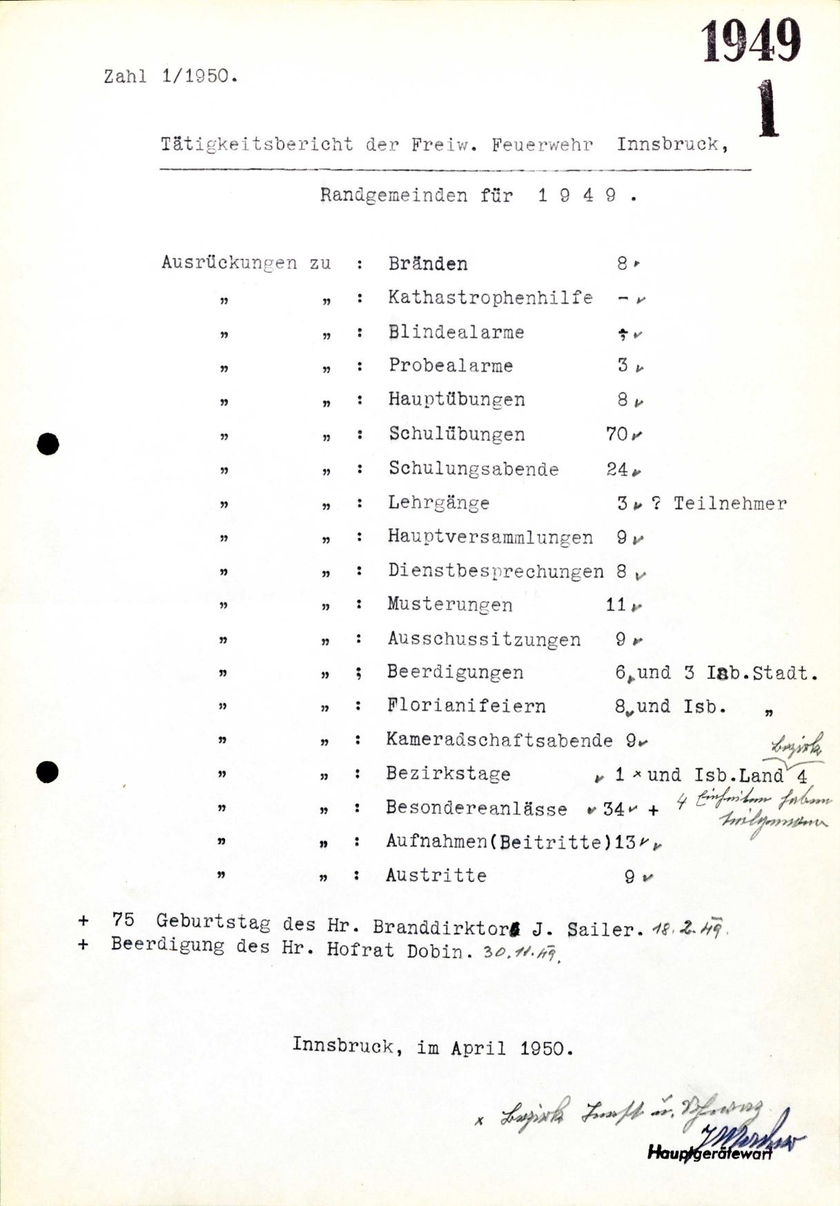 Am 26. November 1949. ist Hofrat Josef Dobin gestorben.