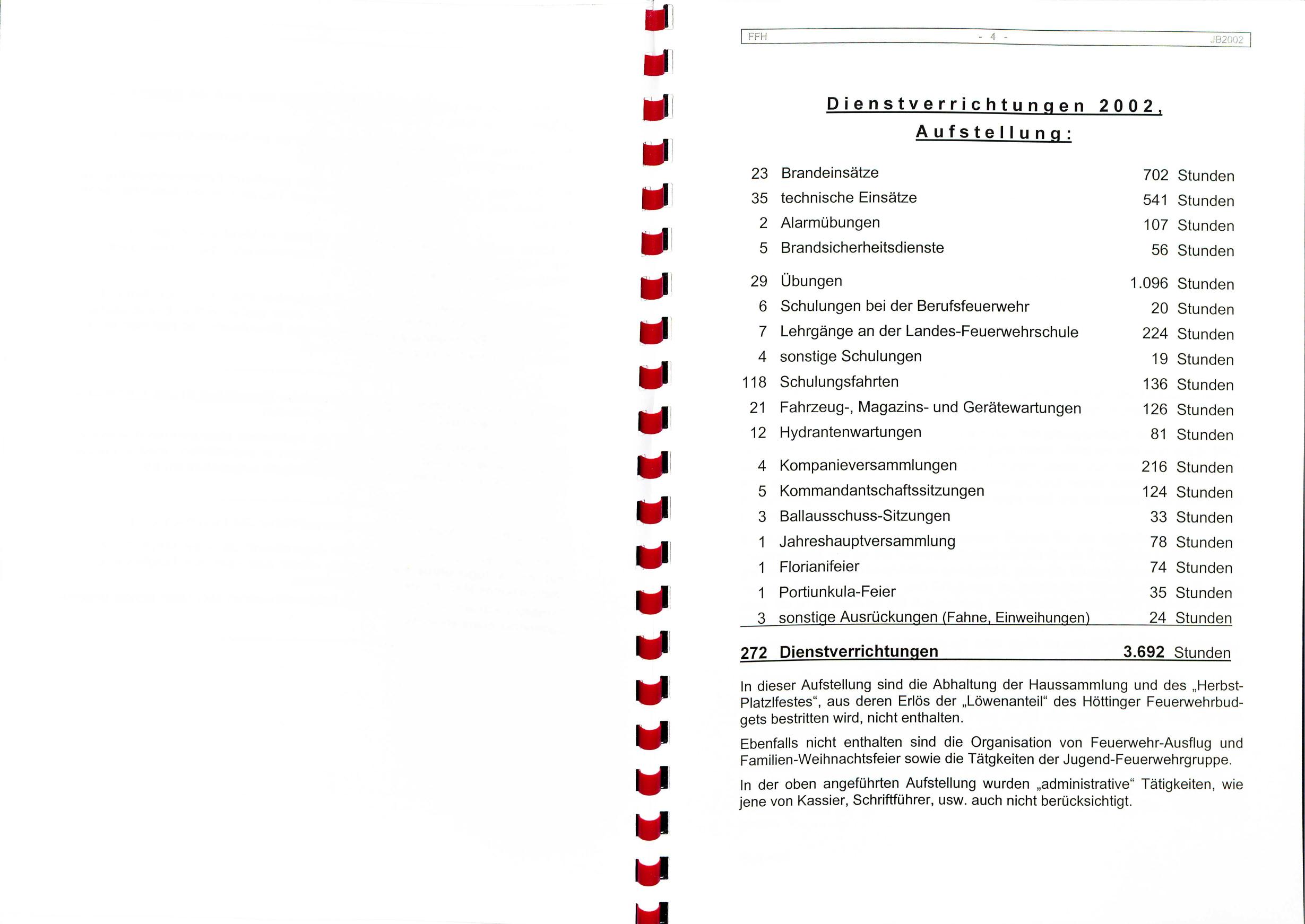 Ebenfalls nicht enthalten sind die Organisation von Feuervehr-Ausflug und