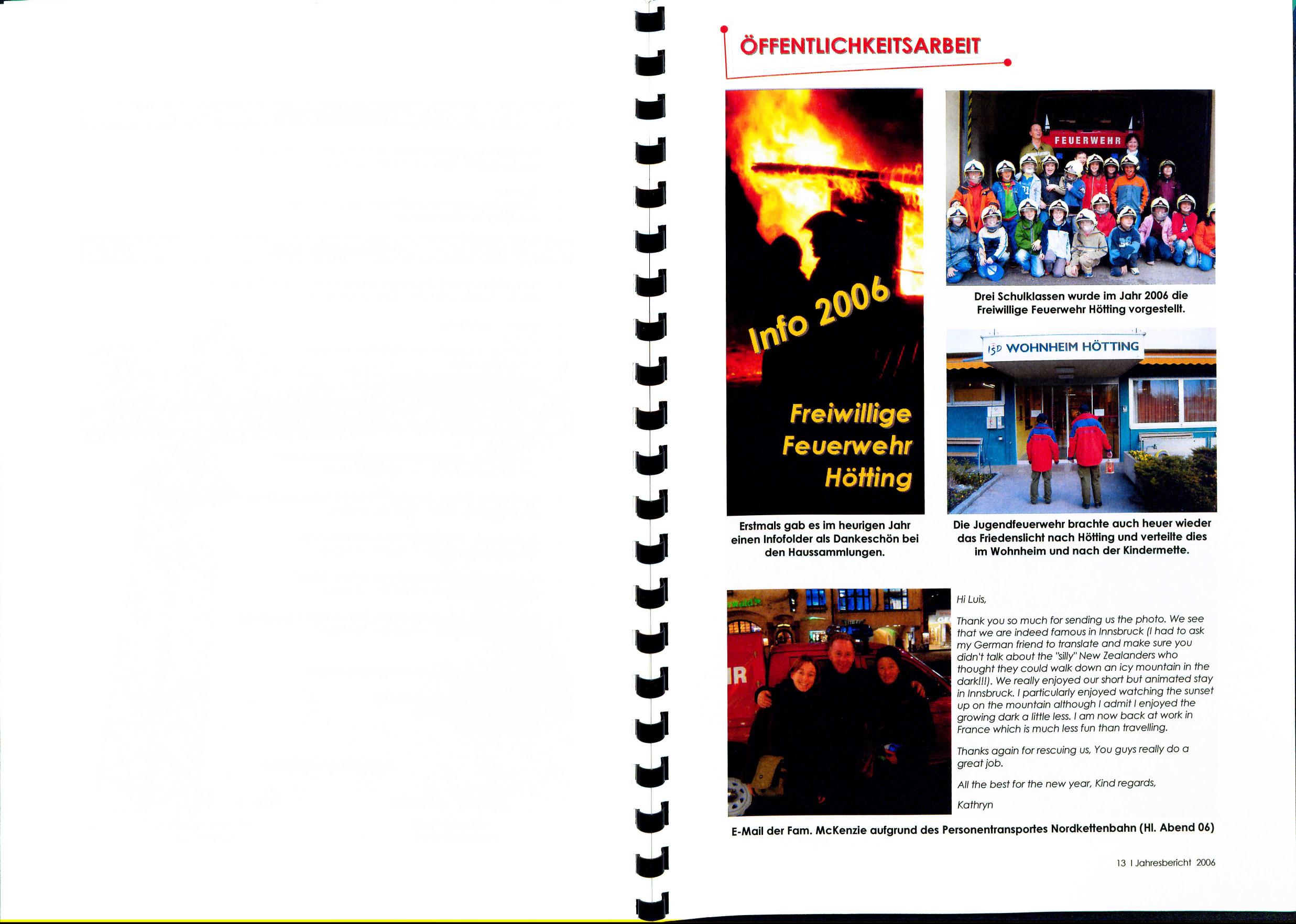 E-Mail der Fam. Mckenzie aufgrund des Personentransportes Nordkettenbahn (Hl. Abend 06)