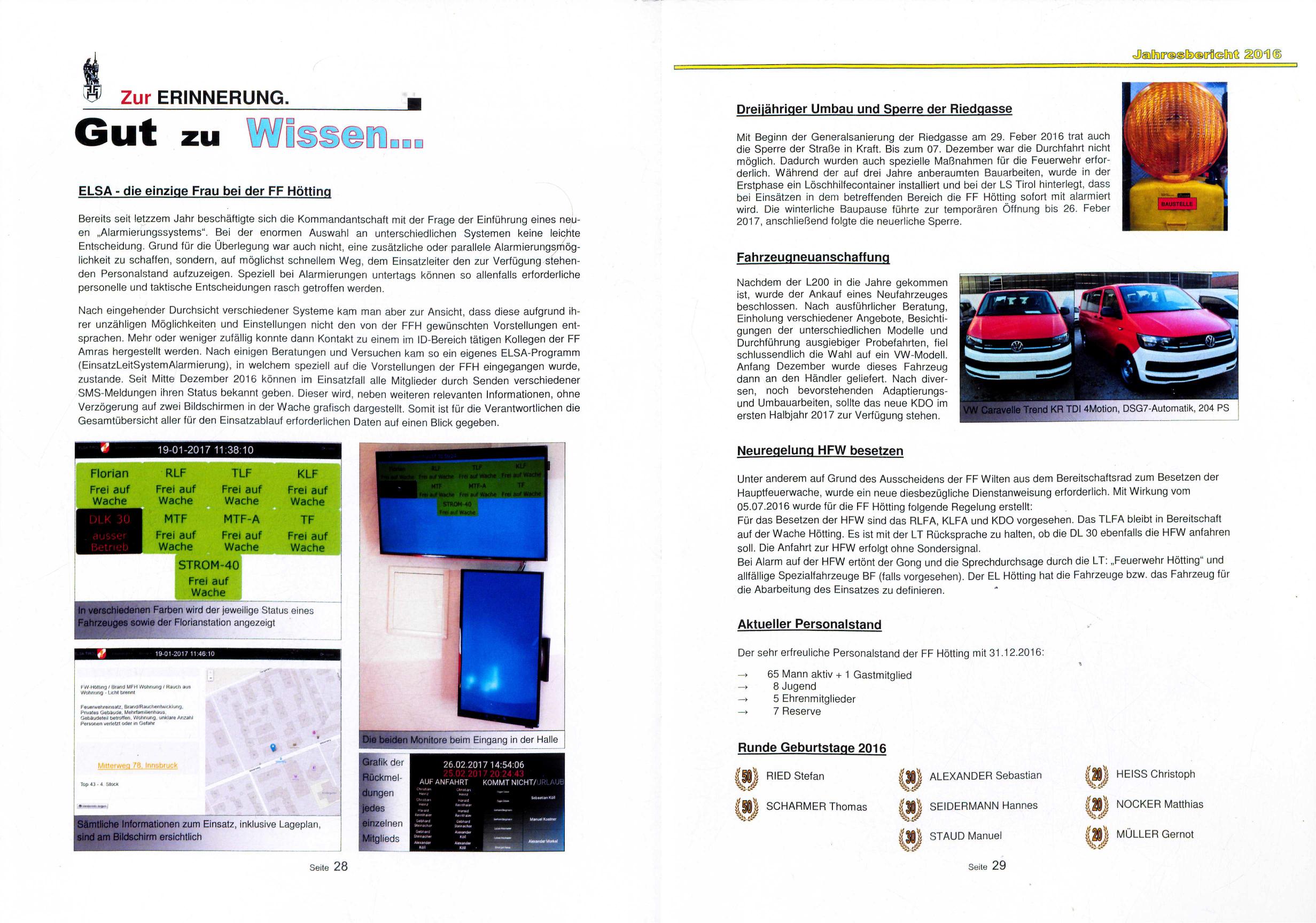 Der sehr erfreuliche Personalstand der FF Hötting mit 31.12.2016: