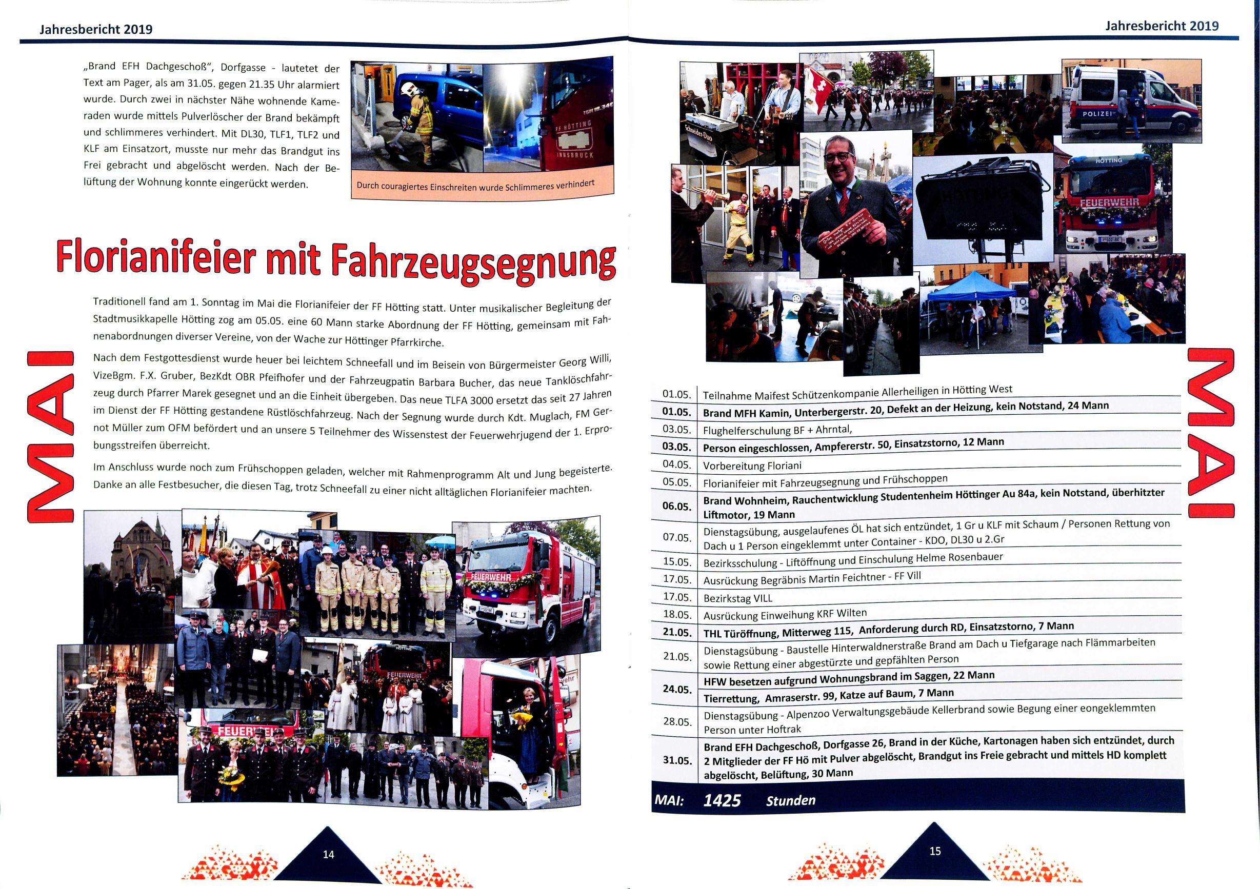 Traditionell fand am 1. Sonntag im Mai die Florianifeier der FF Hötting statt. Unter musikalischer Begleitur s“