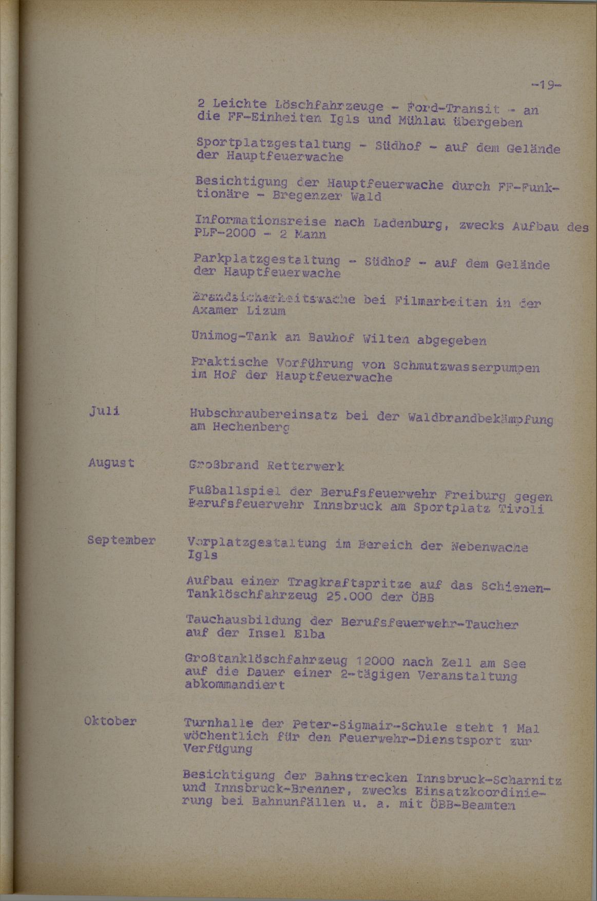 . der Feuerwehr Innsbruck-Stadt im Raume Innsbruck