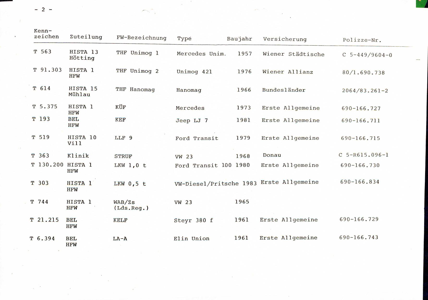 zeichen Zuteilung FW-Bezeichnung Type Baujahr Versicherung Polizze-Nr.