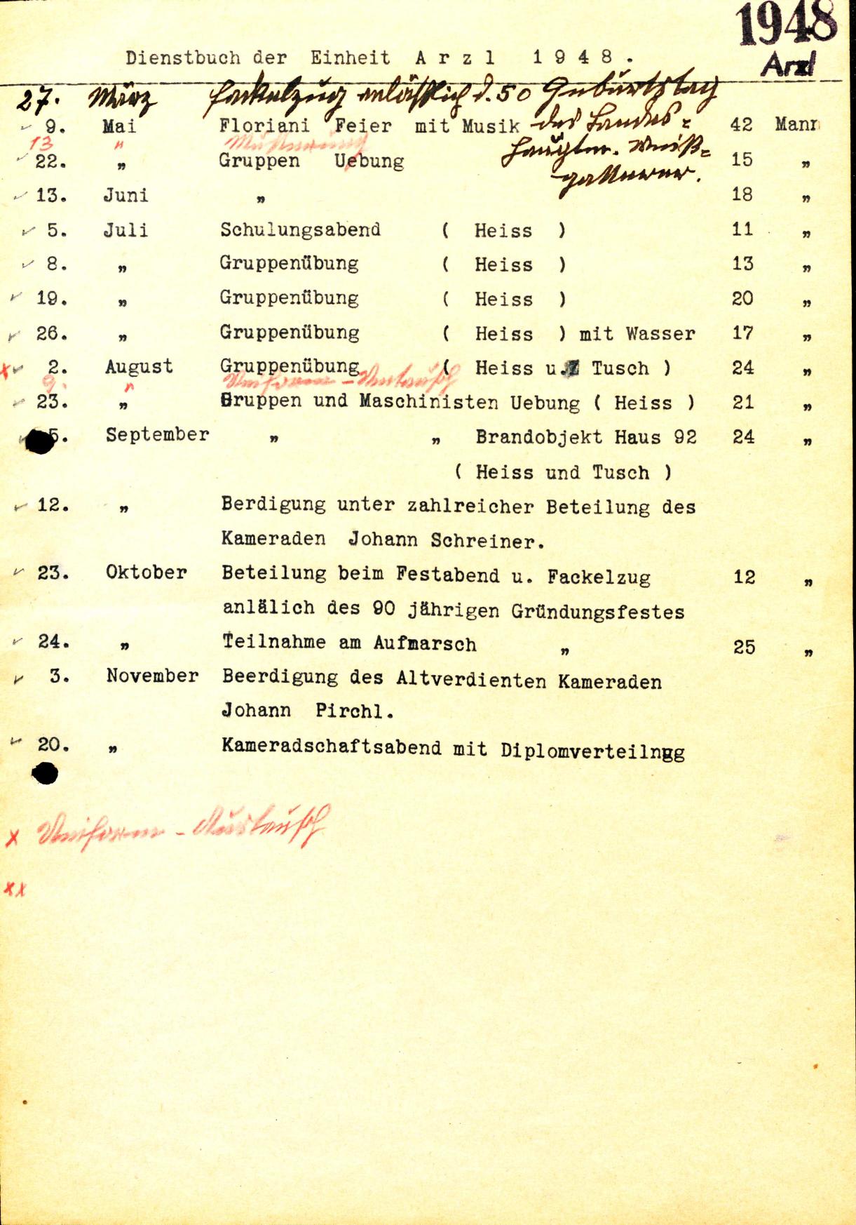 Dienstbuch der Einheit Neu=-Arz1 1948.