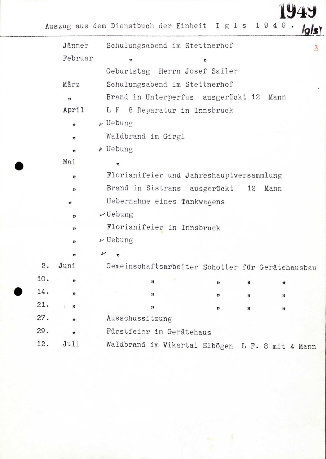 Auszug aus dem Dienstbuch der Einneit Vil1 1949.