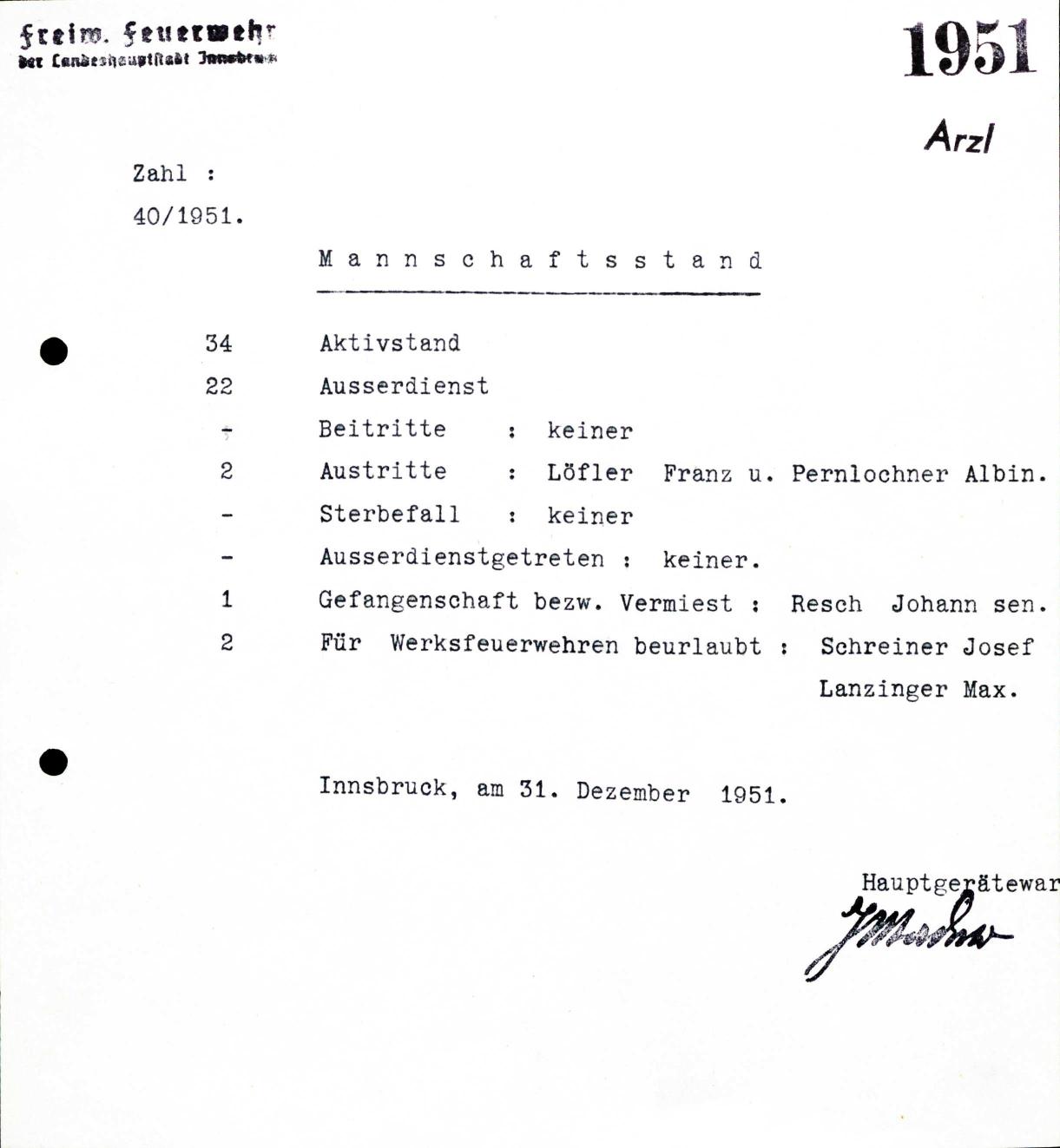 Auszug aus dem Tatigkeitsbericht der Einhei Arzl.