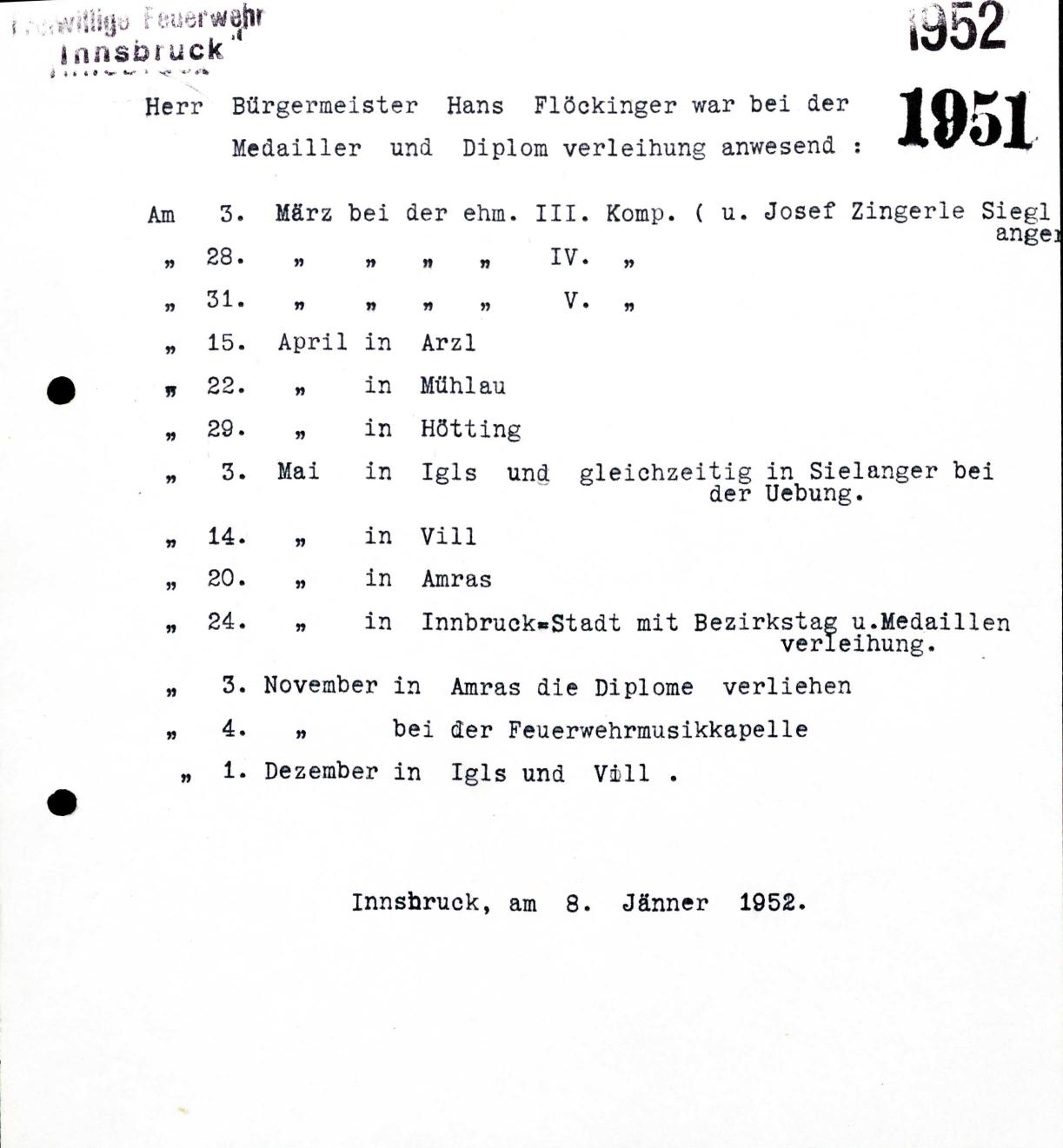 Innsbruck, am 31. Dezember 1951.