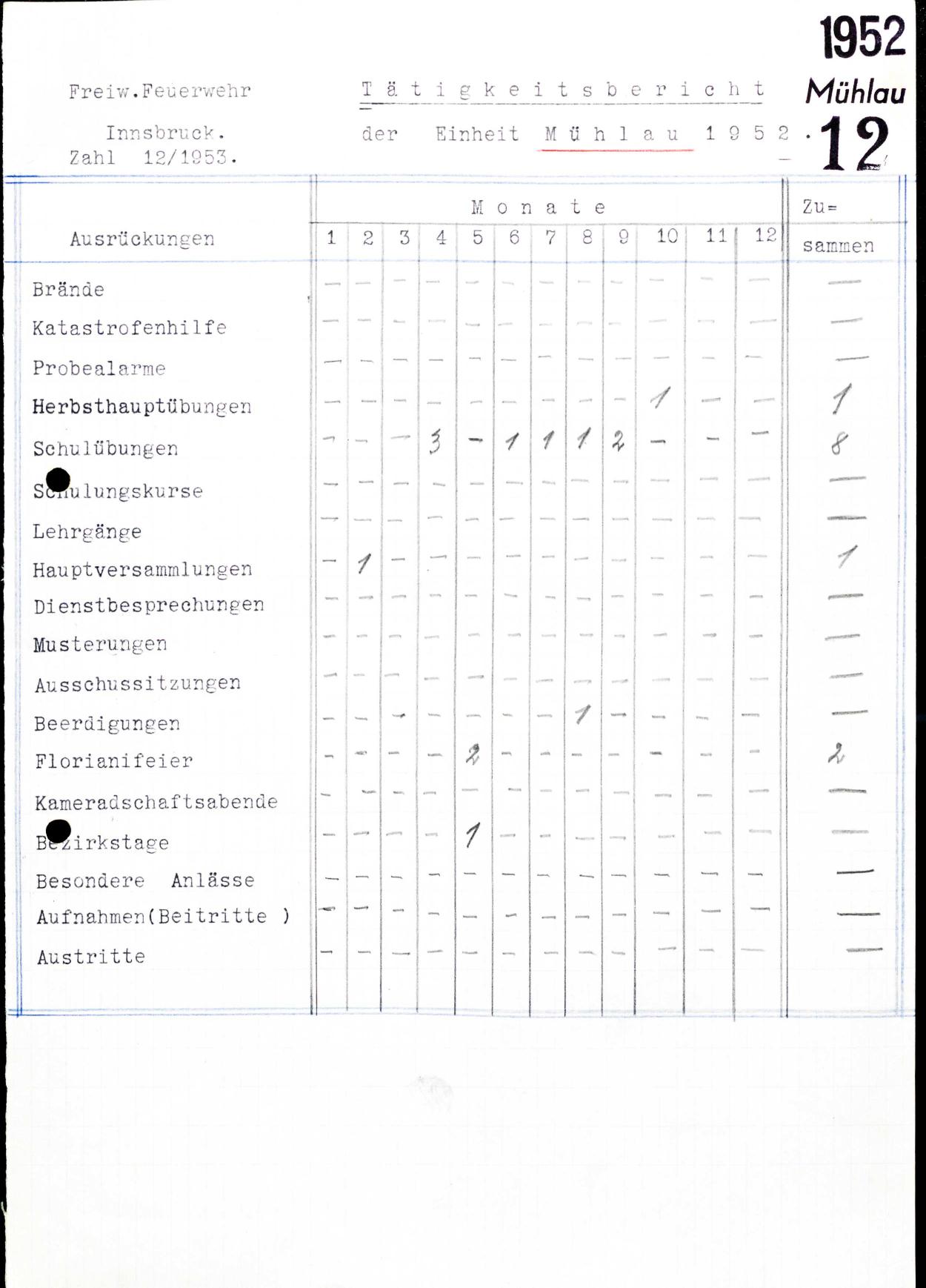 Zahl 12/1953. der Einheit Arzl 1 o, 19