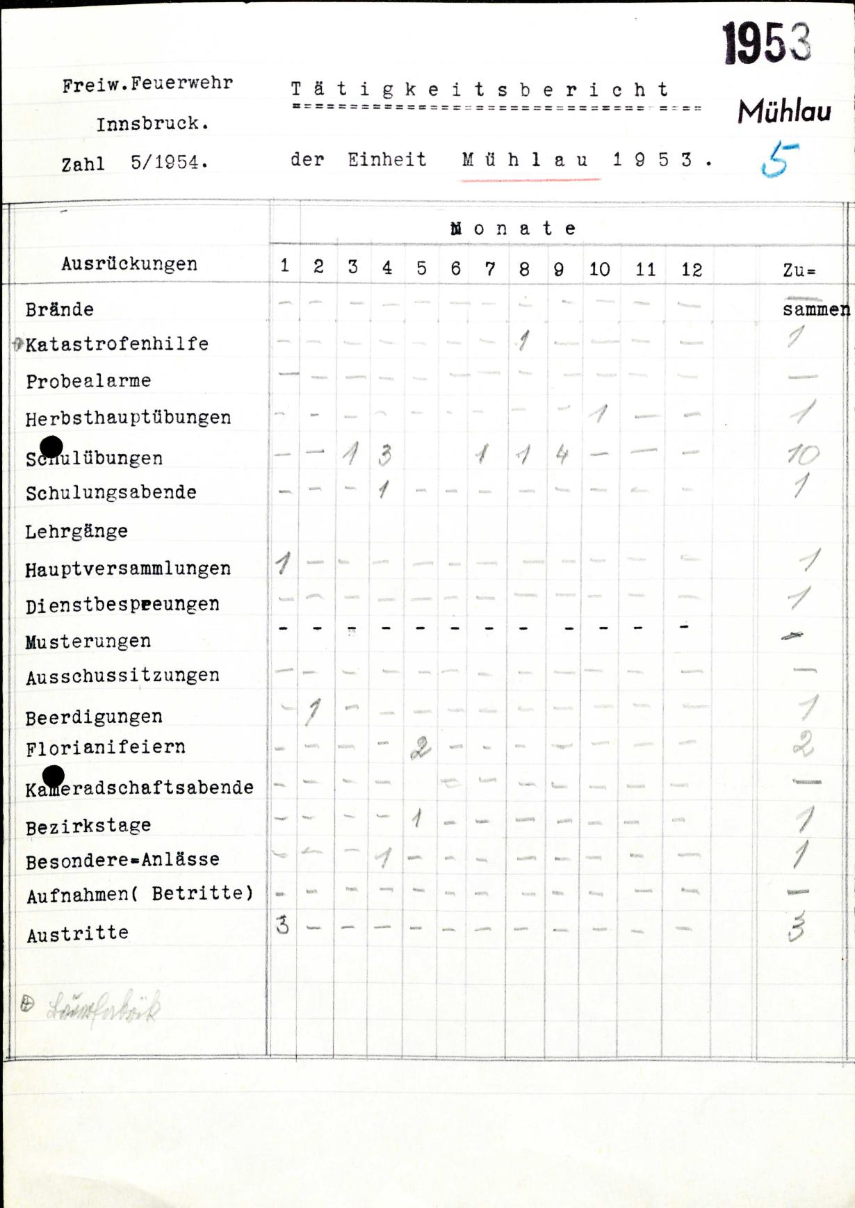 Zahl 5/1954. der Einheit Arzl 1953. 5