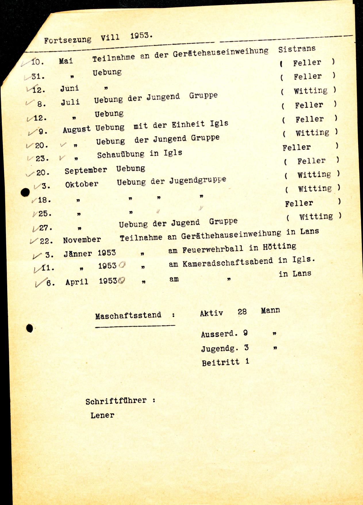 fuszug aus dem Dienstbuch der Einheit vill 1953.