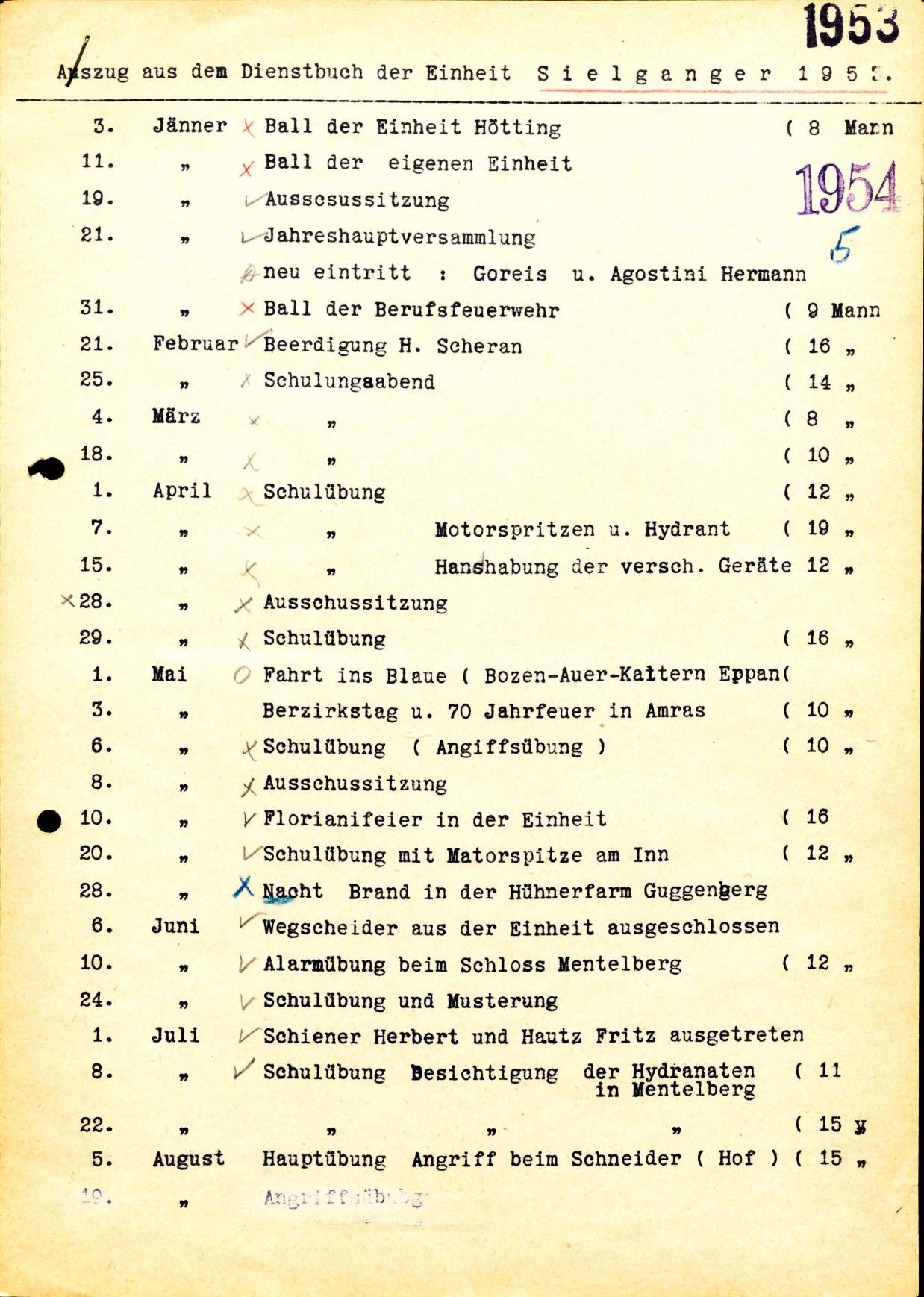 Auszug aus dem Dienstbuch der Einheit Mühlau 1955.