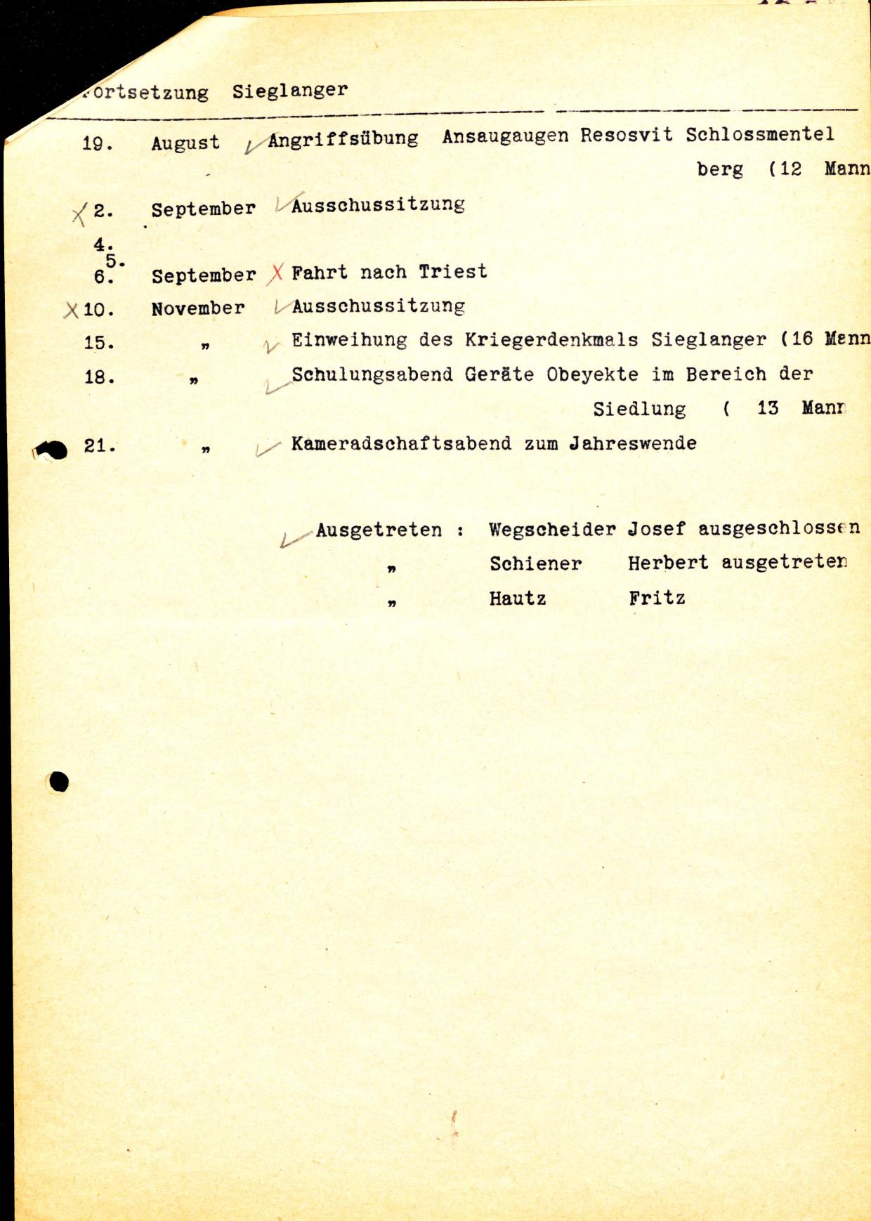 Juli / Schiener Herbert und Hautz Fritz ausgetreten