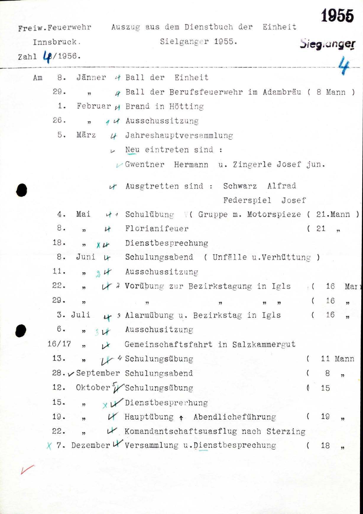 Freiw.Feuerwehr Auszug aus dem Dienstbuch der Einheit