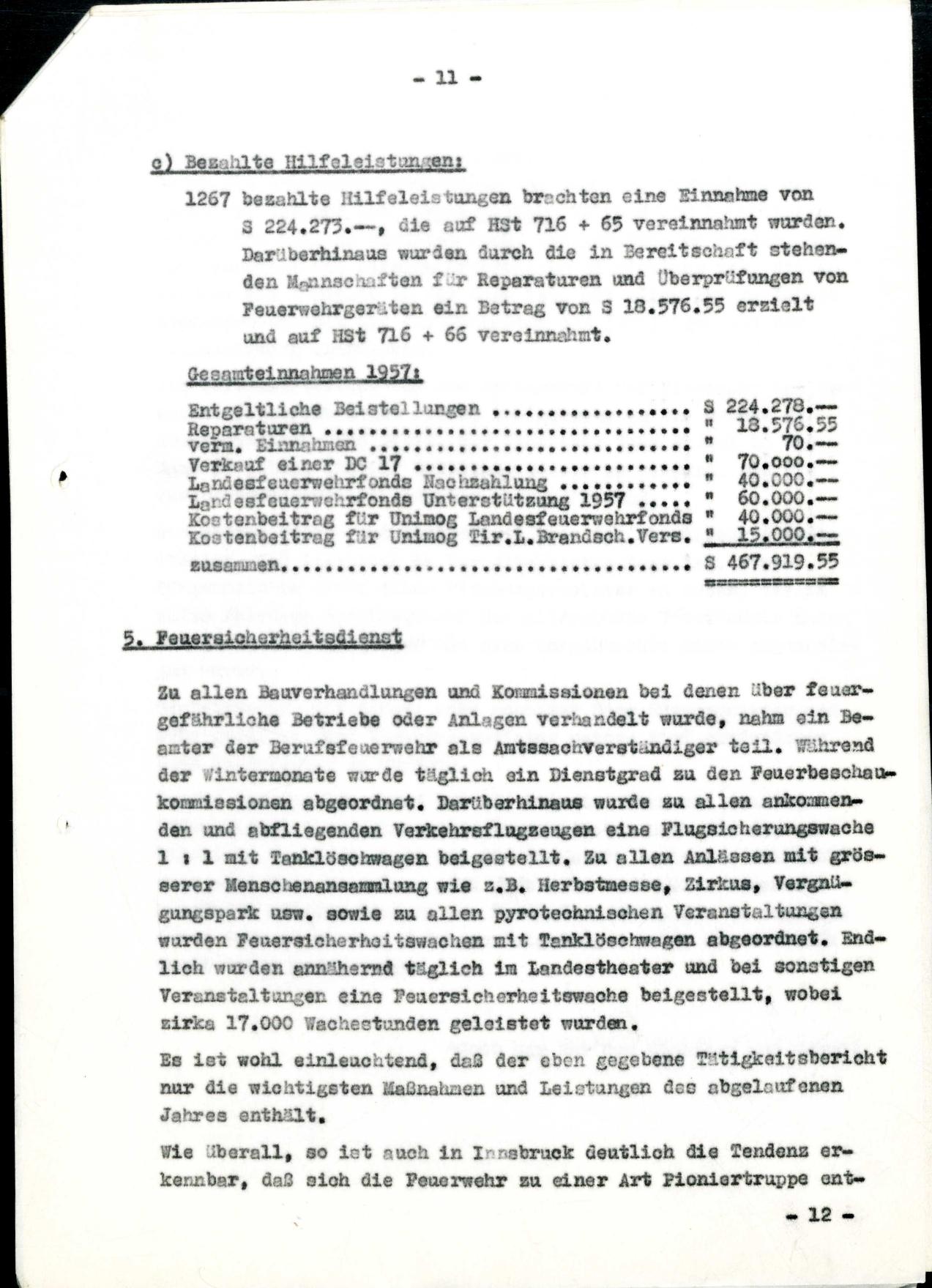 Im Jahre 1957 ist die stüidtische Berufsfeuerwehr zu 6 Groß-,