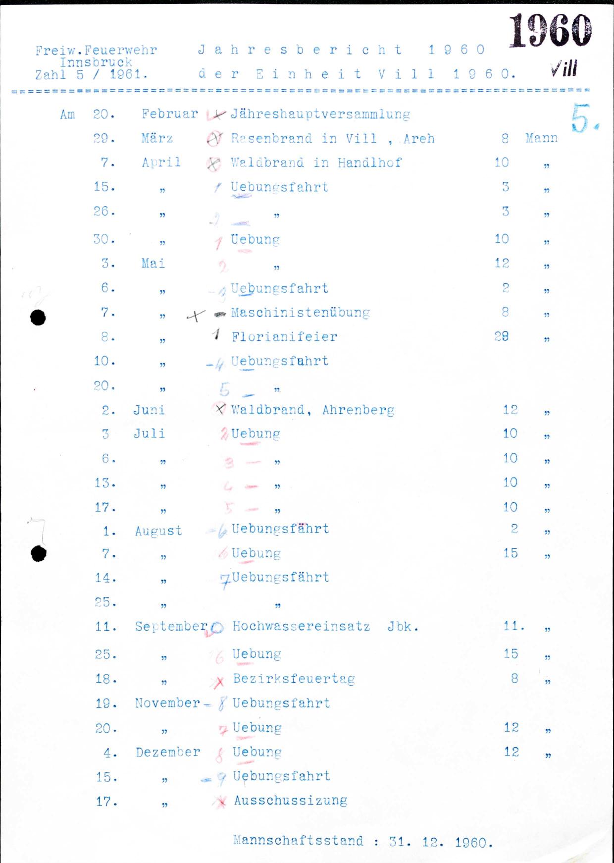 Mannschaftsstand : 31.
